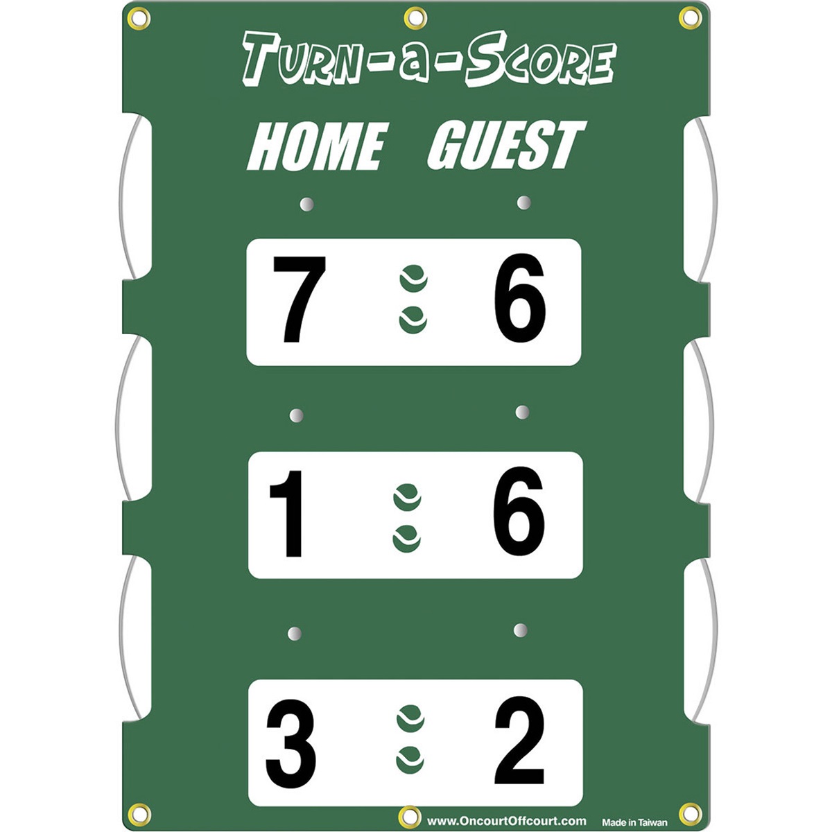 The Oncourt Offcourt Turn-a-Score - Tennis Score Keeper allows families, friends, and teammates to know the score of the games they watch. If you need a very affordable portable scorekeeper that’s easy to read, durable, and attaches to the net without tools, then this score keeper is the answer. You can hang it on the fence or on the net (outside the doubles sideline) to allow viewers to follow the score of the match. Players just “dial” or turn the numbers to change the score. Each unit comes with 2 “S” hooks and 4 tie-wraps for either temporary or relatively permanent installation.