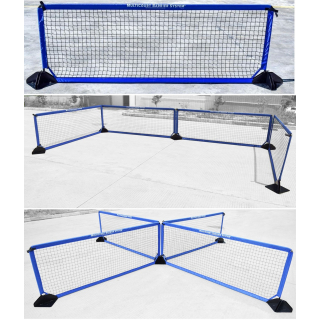 Durable metal poles slide into netting with heavy-duty bases to configure for multiple layouts