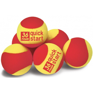 Then QuickStart 36 Red Foam Training Tennis Balls for 36’ Court (6 Balls) are softball size and ideal for beginning players on 36 foot courts in 10 and Under Tennis programs. These top of the line high density foam balls are designed for durability and consistent bounce so they rebound to an appropriate height for the youngest of players. They come as a set of 6.