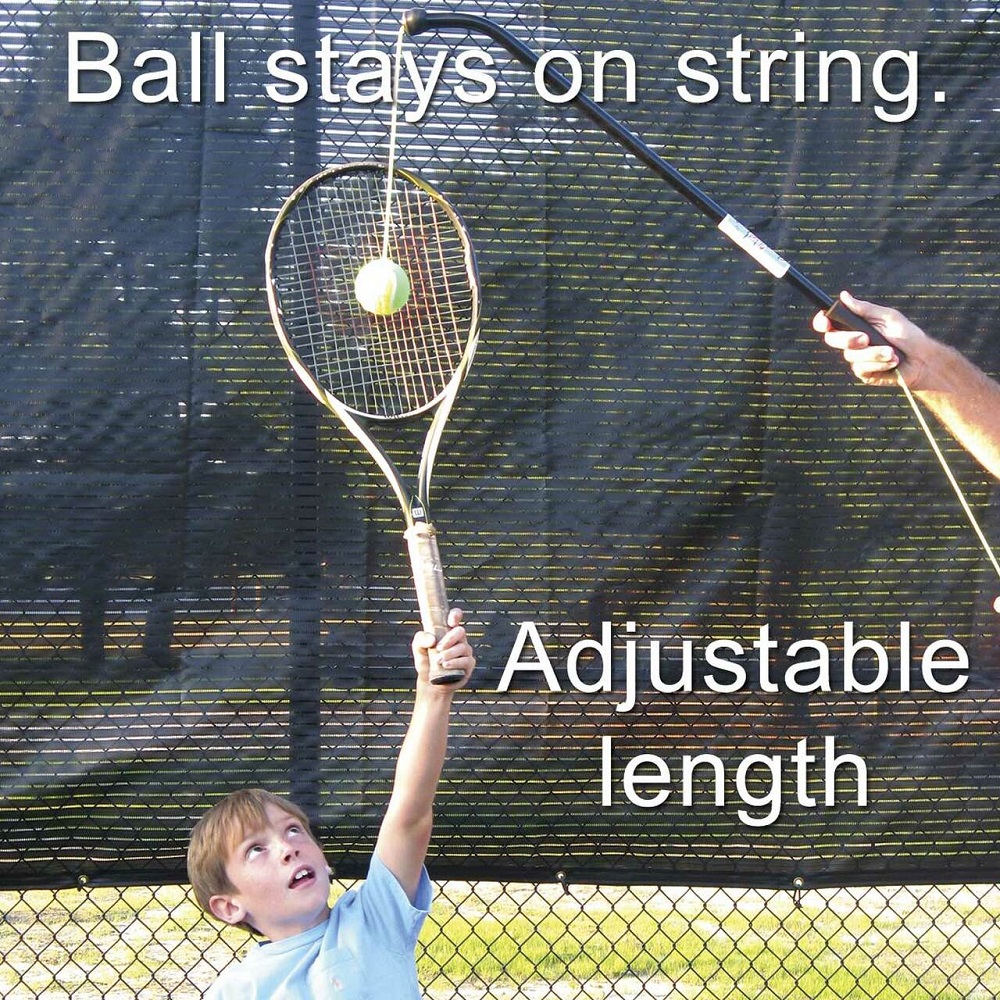 The Server Wand Youth Tennis Training Aid is simple to use for the coach or parent working with beginning children. The ball is attached to a durable string and adjusts in length very simply. Just pull on the opposite end of the string and like magic the ball goes up or down.