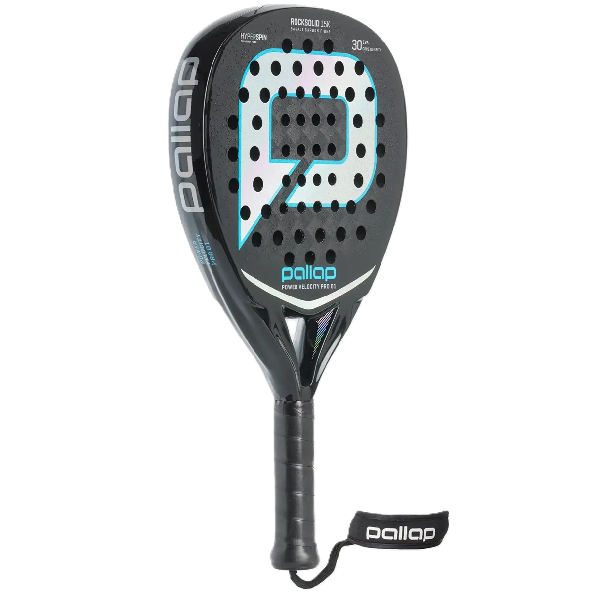 The Pallap Power Velocity Pro 01 Padel Racket (Black/Carbon) is engineered to win tournaments. If you thrive on offensive volley play, here's your adrenaline buzz. The diamond-shaped ROCKSOLID 15K Basalt-Carbon compound delivers infinite power. The engineered ROCKSOLID bridge stabilizer offers a cushioned feel with impressive shock absorption and unmistakable direct feedback from the sweet spot to your arm. With the HYPERSPIN-equipped surface (note the small raised bumps on the racket surface), you'll achieve maximum ball rotation. This professional setup is completed with a medium EVA 30 core, uniting full dynamics and maximum precision.