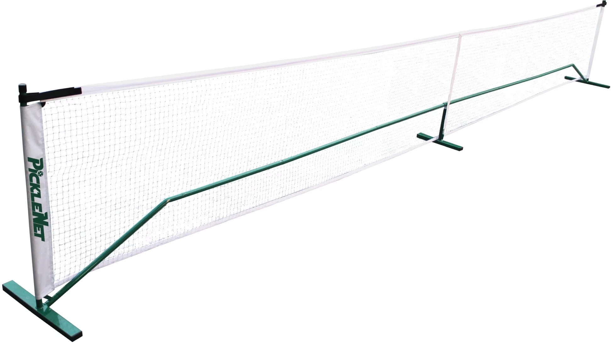 The Putterman PickleNet™ Standard Portable Net System is made with a top-quality design that uses oval tubing. This provides a high level of stability and durability in the net’s structure, preventing sagging or twisting of the tubes. The Putterman PickleNet™ Standard Portable Net System is made with a dark green powder-coated steel, and befits its name, with “PickleNet” printed on the side of the net sleeve. This system is regulation size and height, measuring 22 feet long x 34 inches high at the center.