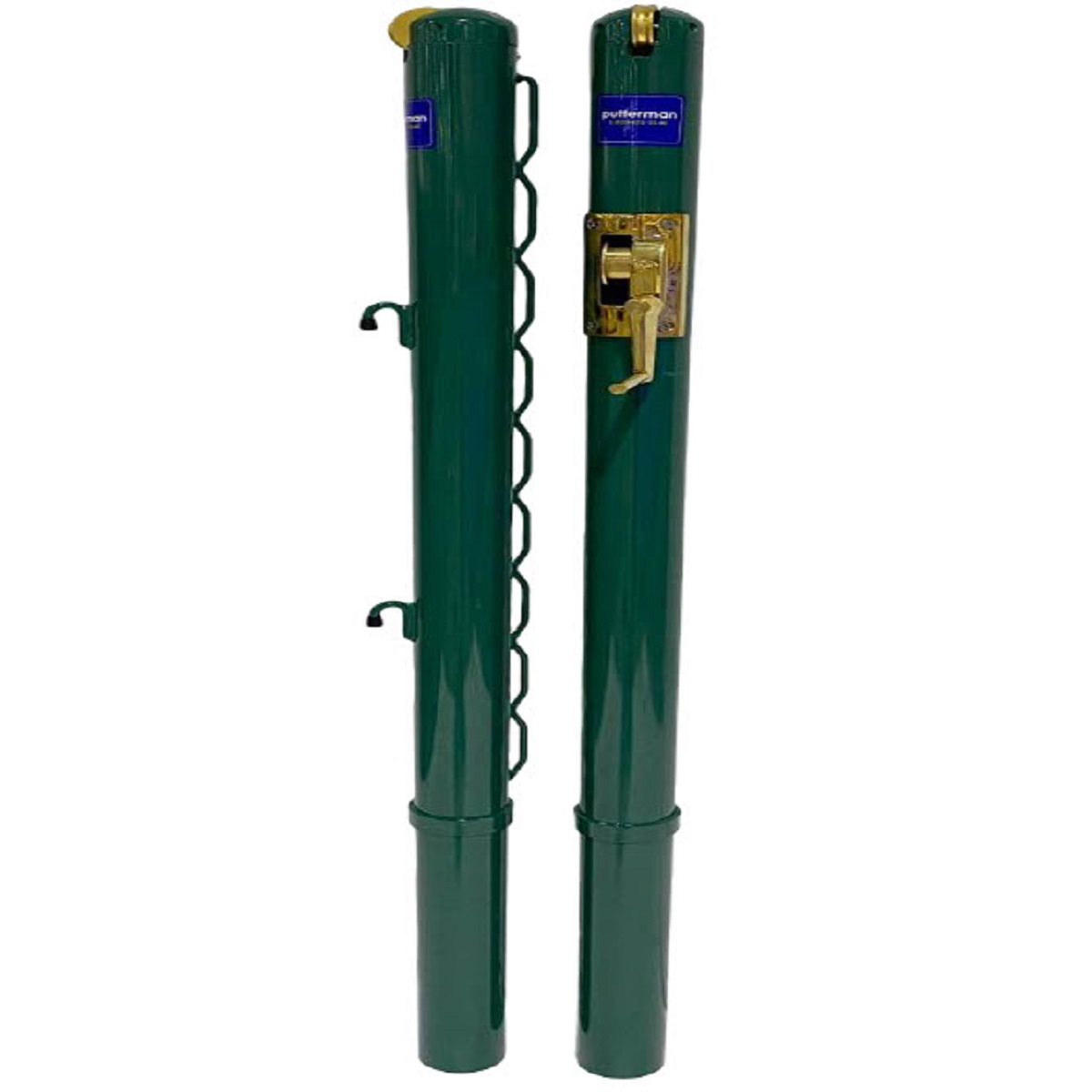 The Putterman Round Tennis Post With Internal Wind (2 7/8 Inch OD) come as a pair of tennis posts in either black or green.