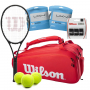 This is the Reilly Opelka Pro Player Tennis Gear Bundle. You’ll get a Wilson Pro Staff 97 v13 Tennis Racquet combined with the Wilson Super Tour 15 Pack Tennis Bag (Red) that Reilly uses. The Wilson Pro Staff 97 v13 comes strung with the hybrid setup Reilly Opelka is said to use: Luxilon ALU Power 125 Silver Tennis String @50lbs. for the Mains and Luxilon ALU Power 123 Fluoro Tennis String @50lbs. for the Crosses. This Reilly Opelka Bundle also comes with a Wilson Pro Overgrip Sensation 3 Pack, and a can of tennis balls.