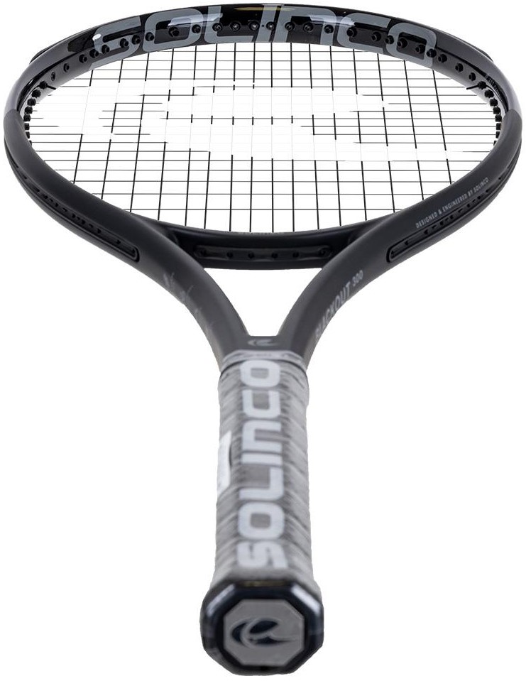 The Solinco Blackout 300 Tennis Racquet is the most popular frame in the Blackout series. This racquet is designed for competitive players who thrive with a ton of power in their shots and can control that power through spin. Junior elite and Pro players favor the Blackout for its 'easy power' and added performance on every shot.