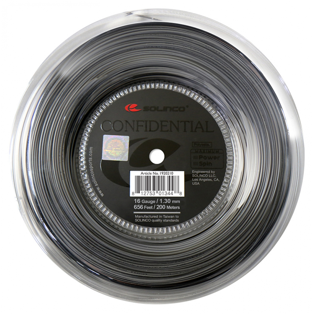 The Solinco Confidential Tennis String is a newly developed, high-performance and versatile co-polyester string designed to offer improved playability, feel and comfort while generating extreme power and intense spin and bite.