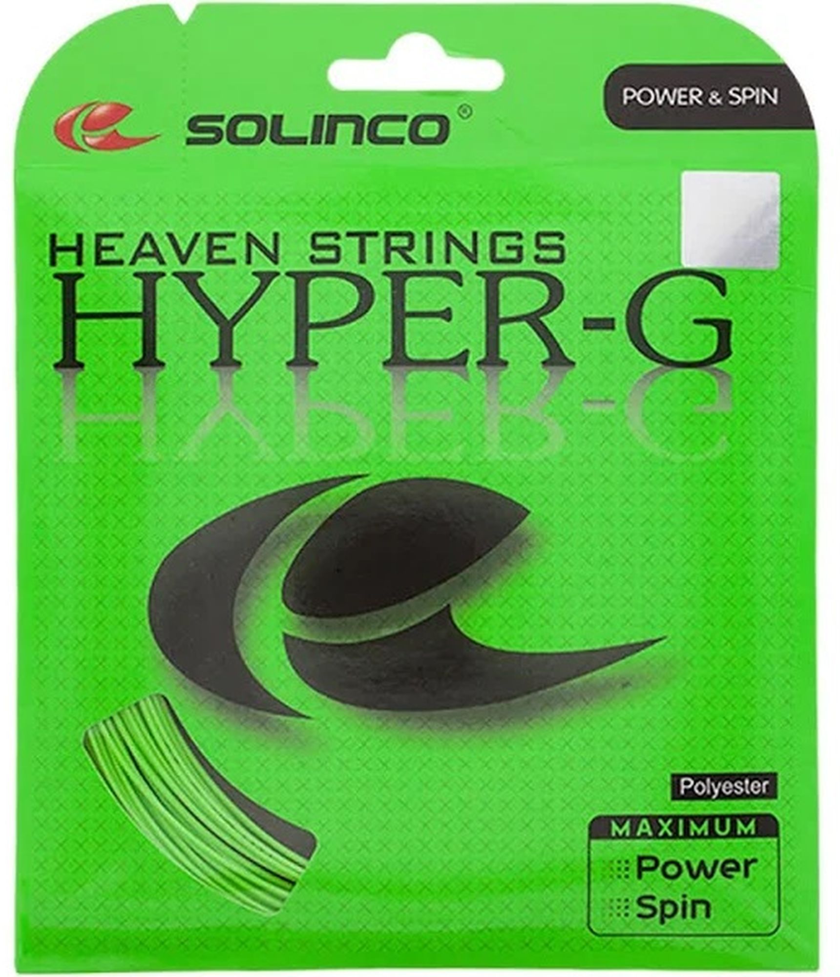 The Solinco Hyper-G Tennis String is a newly developed, high-performance and versatile co-polyester string designed to offer playability and control while generating extreme power and intense spin and bite. Hyper-G utilizes a newly developed chemical formula in combination with the high-powered polyester filament fiber designed and shaped to generate maximum power and control while amplifying the spin and bite intensity of the ball.