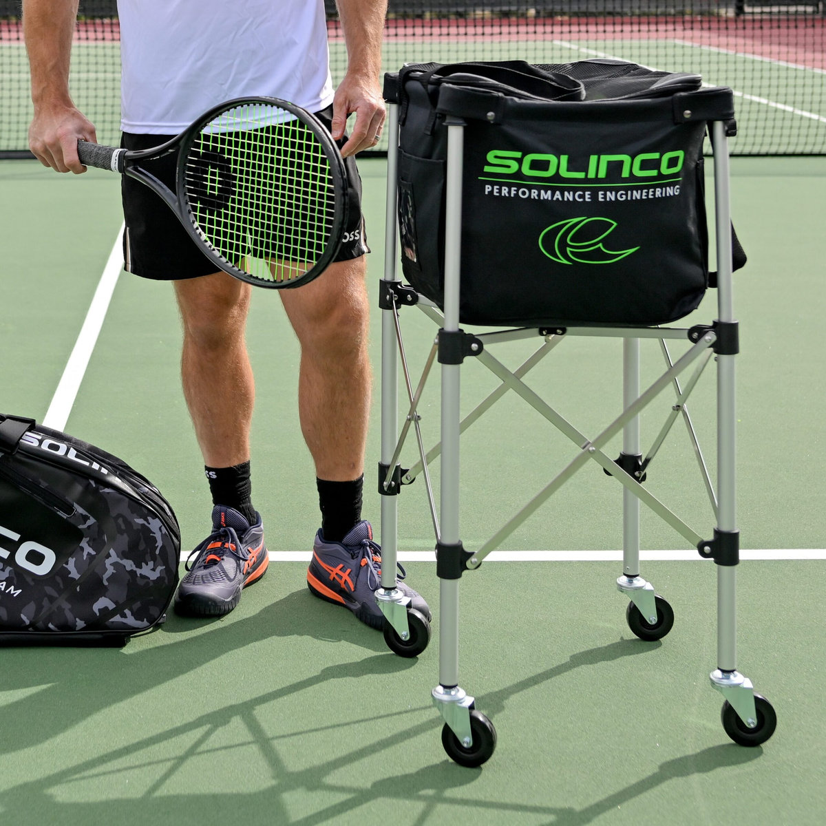 Solinco Lightweight 180 Ball Tennis Cart with Heavy Duty Ball Bag (Black/Green)