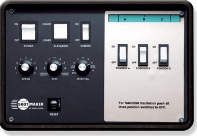 Two-button wireless remote - Starts and stops ball delivery, and controls the side-to-side position of the ball throws.($200)