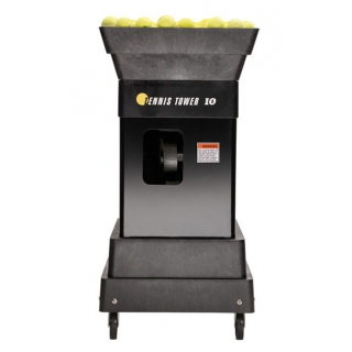 - The TENNIS TOWER IO can be run from an internal heavy-duty battery that typically last 4-6 hours per charge, or from a standard AC outlet. Any time it is plugged into an AC outlet it is charging the battery. This option must be added to cart during purchase and cannot be added once your new machine leaves the factory. Call to purchase the AC/DC Power Upgrade.