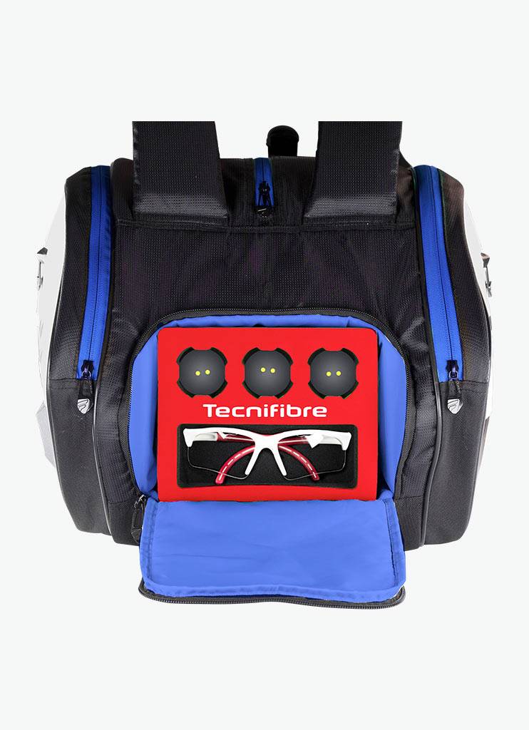 The Tecnifibre Air Endurance 12 racket bag is designed for a competitive player who needs a lot of storage space for equipment and accessories. Featuring Speed Ventilation system, it offers increased breathability and has a large main compartment, as well as 2 racket pockets to hold up to 12 rackets. It also includes a ventilated shoe pocket for footwear and a side zipped pocket for any personal items. To absorb impact shock, there is high density foam inside the bag and an included accessory box for goggles and extra balls. Carry the bag with ease using padded, adjustable backpack straps with a chest belt.
