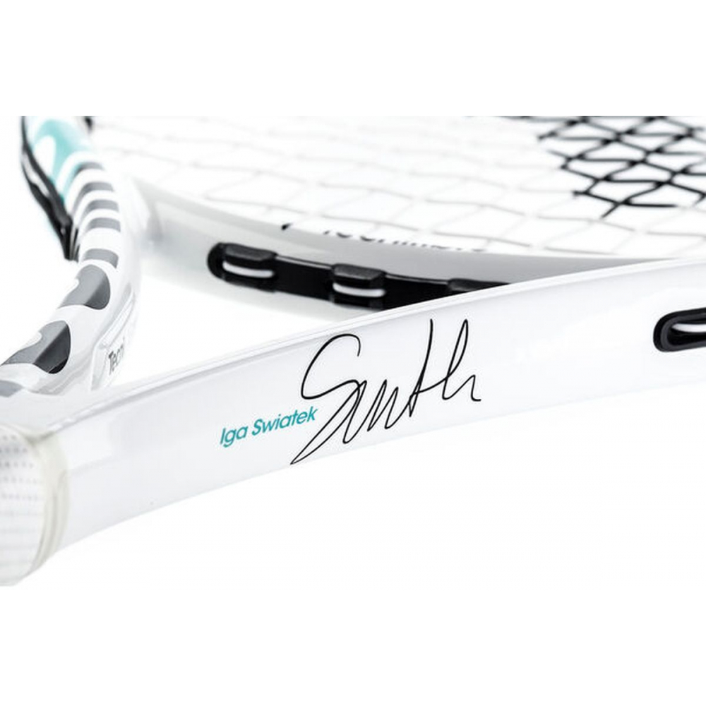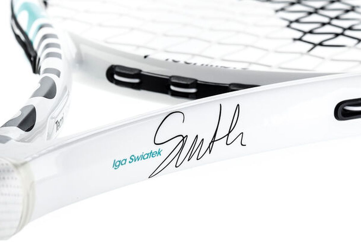 Also, with the attention to detail she demonstrates, Iga wanted to customize the cosmetics of the product with a glossy finish and signed the frame for approval. Sold uncorded. This racquet is also used by American pro tennis player Danielle Collins.