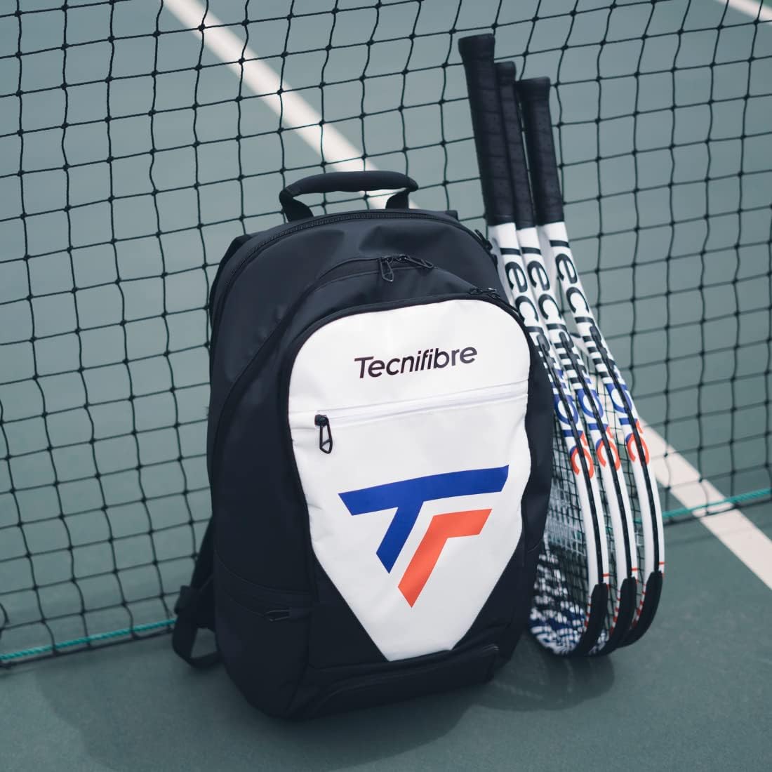 The Tecnifibre Tour Endurance Backpack (White) is the most popular choice for its versatility. It is designed for a tennis player or sports enthusiast who needs to carry items comfortably and in an organized fashion. Comprised of a large central compartment, a shoe pocket and 3 accessory pockets, its racquet pocket located on the back can hold both a computer and documents, making the bag perfect for tennis, school, business or other sports.