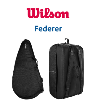 The Federer collection, designed for super Pro player, Roger Federer, is constructed with Wilson’s Thermoguard and MoistureGuard technologies to keep your racquets protected from extreme elements. The 6-, and 12-pack Wilson tennis racket bags feature a large footwear compartment, a large and small accessory compartment, an easy carry handle, and adjustable backpack style straps. The 3-pack tennis bag sports an outside accessory pocket for your keys and cell phone, and a padded shoulder strap for comfort. The Federer Team and RF DNA backpacks feature a Black rubber screen print logo & RF signature on front, 2-Racket compartment with locking zippers, 2 Additional compartments for equipment and apparel, and padded backpack straps for extra cushioning.