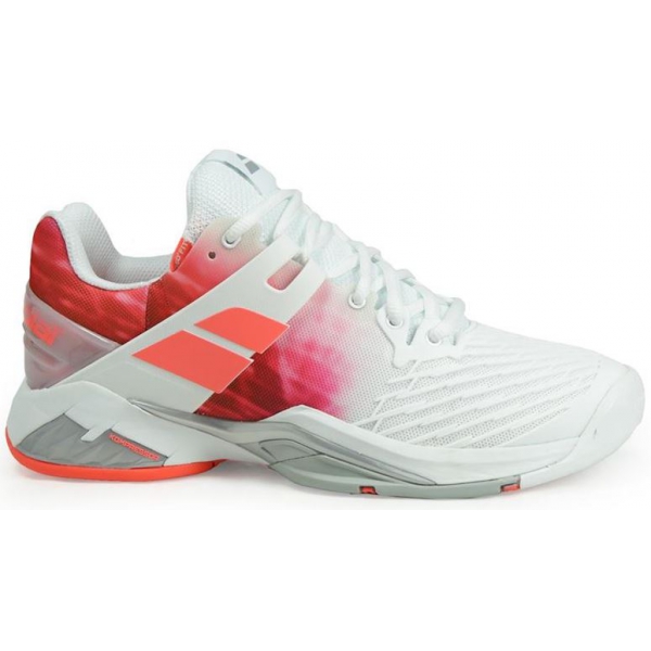 The new Babolat Propulse Fury All Court Women's Tennis Shoe is the ultimate power and performance shoe for tennis players looking for superior comfort, support, stability, and durability. Optimal heel and midfoot support reinforced by an external shell TI FIT: specific last for high performance stability. New and innovative rubber compound developed by Michelin to improve abrasion resistance and increase traction. ACTIVE FLEXION (technology developed and patended by Babolat) Shape and makeup of the materials used address 9 key pressure points for maximum responsiveness