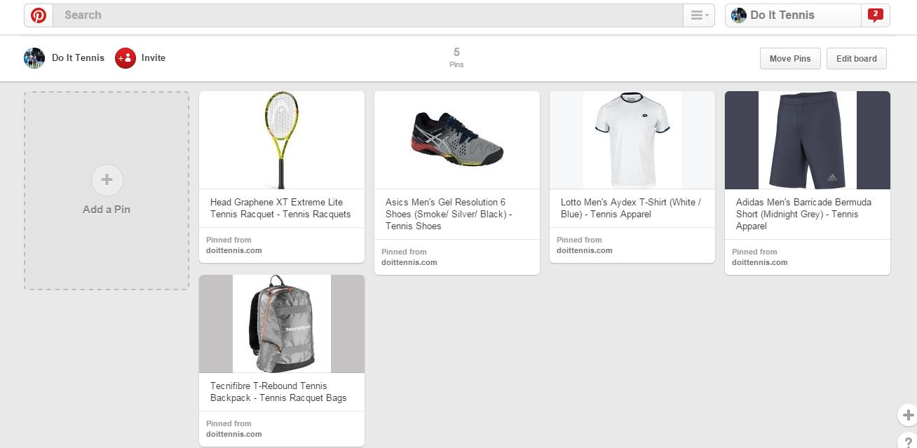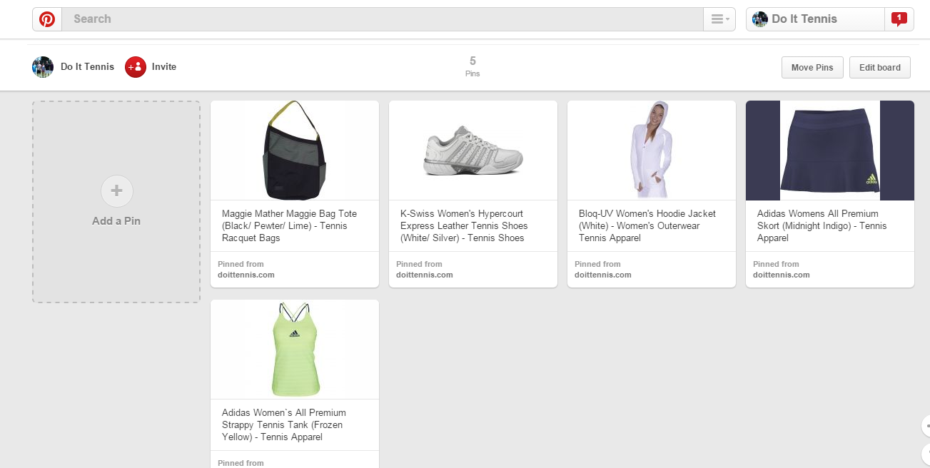 1. Share your tennis outfit pinboard via Facebook, tagging