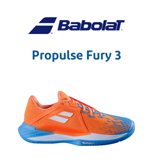 Propulse 3 Babolat tennis shoesfeature six Babolat patented technologies for one of the most durable and dynamic tennis shoe choices on the market. The Propulse 3, Propulse 3 Clay, Propulse Lady 3 and Propulse Jr. 3 are all wearable out of the box, with a Babolat shoe guarantee that no break-in time is necessary, due to the upper outsole Cell Shield material. A Michelin OSC bottom outsole offers road-side durability and incredible traction. EVA insole, heel Kompressor System and three-point Foot Belt technology combine for injury prevention and comfort. The Propulse 3 features the most concentrated dose of Babolat shoe technology for unmatched performance on the court.