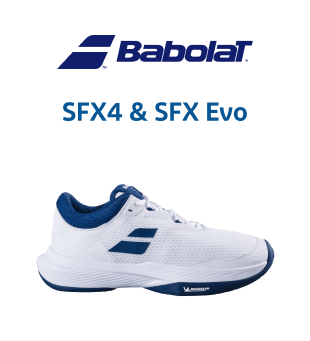 The SFX Babolat tennis shoeline offers a high performance shoe designed to follow the foot’s movement on the court for more fluid and effortless footwork. Both the men’s and women’s styles in this line of Babolat shoes offer a large toe box for natural movement, S-Shield for excellent durability, comfort and ventilation, Ergo-Motion sole for long lasting comfort and support, Kompressor System technology for maximum shock absorption, 3D ergonomic shank to guide lateral moves, and Michelin Performance outsole for durability and traction on a variety of surfaces.