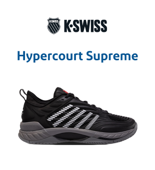 The K-Swiss Hypercourt Supreme Tennis Shoe targets a competitive player who is looking for a light and responsive shoe. It incorporates Surge 7.0 for maximum energy return and Dragguard 7.0 for outsole durability. Its unique heel feature provides a comfortable, secure fit. Worn by ATP and WTA professional athletes.