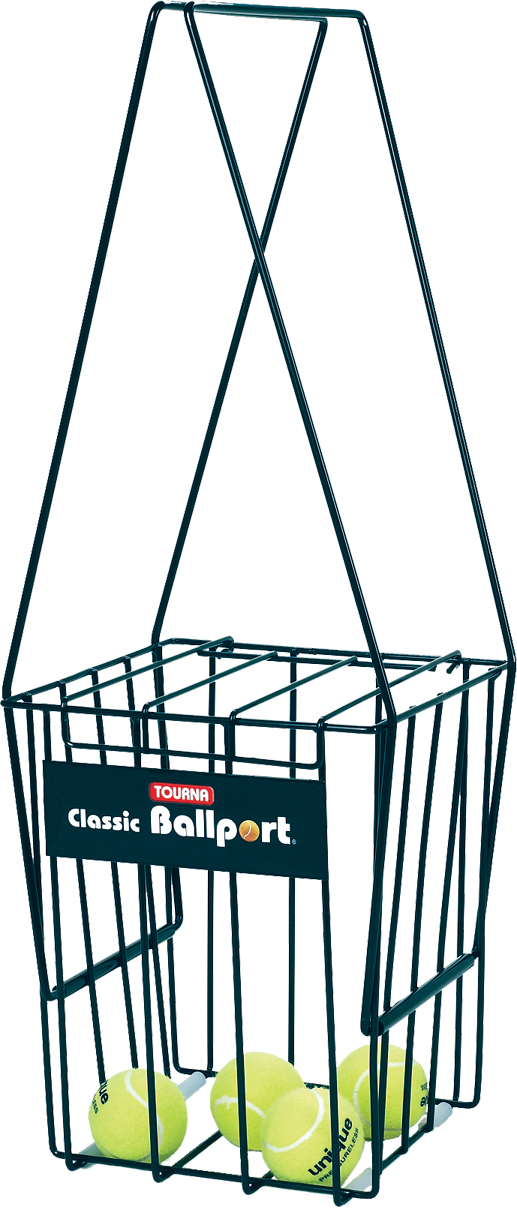 The Tourna Ballport Classic 70-Ball Tennis Ball Hopper securely holds and picks up 70 standard tennis balls