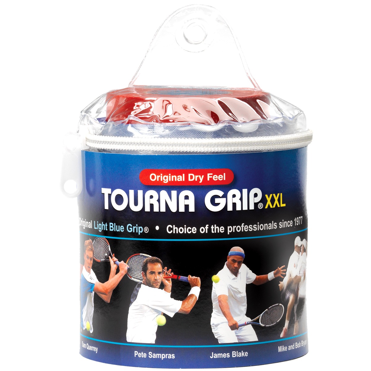 Tourna Grip Overgrip XXL (30 Pack) is the original dry feel “light blue grip that does not slip” and most absorbent overgrip in the world. This item includes 30 XXL grips per pack–ideal for large grip sizes. 80% of all tennis touring pros play with Tourna Grip.
