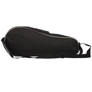 Large, zippered main compartment that fits up to (2) rackets and (1) can of balls.