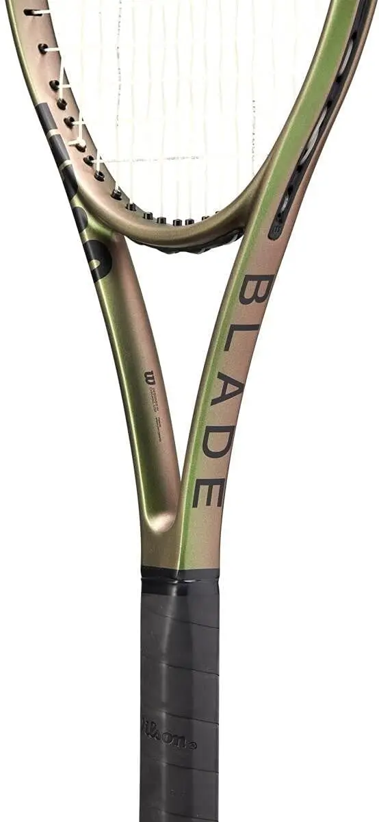 The Wilson Blade 100 v8 16x19 Tennis Racquet offers Blade’s signature feel along with an excellent blend of dynamic design, power and control for competitive players. Equipped with all-new FortyFive, a patent-protected carbon construction, this racquet adds a few degrees of flexibility and stability from its previous version to create excellent feel for the ball. Boasting a slightly thicker beam than other Blade models for a boost of power and flashing a unique color-shifting elastic finish between shades of green and copper, this racquet turns heads with both its looks and its next-level performance.