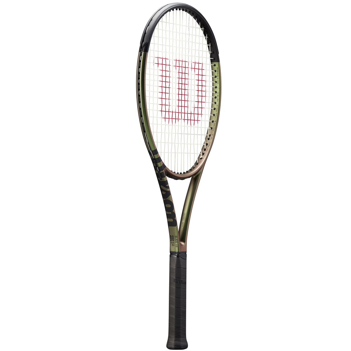 Sporting a slick color-shifting elastic finish, the Wilson Blade 98 v8 18x20 Tennis Racquet commands attention with eye-catching design alongside elevated performance. While the exterior of the frame morphs between shades of green and copper, the interior of the frame features new FORTYFIVE° technology to increase flexibility and stability, yielding excellent feel for the modern, vertical swing path common in today’s game. In addition, the carbon fiber handle extends to the end cap for enhanced feel and torsional stability, producing a frame that exceeds all expectations for the latest evolution of the most popular racket franchise on the pro tour.