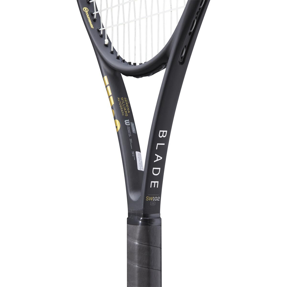 The Wilson Blade SW 102 Autograph Tennis Racquet pays tribute to Serena’s relentless pursuit to cement her legacy not only as an unrivaled champion on the court but also as a transformative inspiration for many generations to come. The racket’s unique design includes a gloss gold trim at the tip and a host of inspirational words on the inside of the throat that describe Serena’s incredible journey to stardom. Serena tasked Wilson Pro LABS with creating a racket that increased control without sacrificing her legendary power - the result is a frame with a slightly smaller head size for added feel. Racket also features Countervail for reduced vibrations and arm-friendly comfort.
