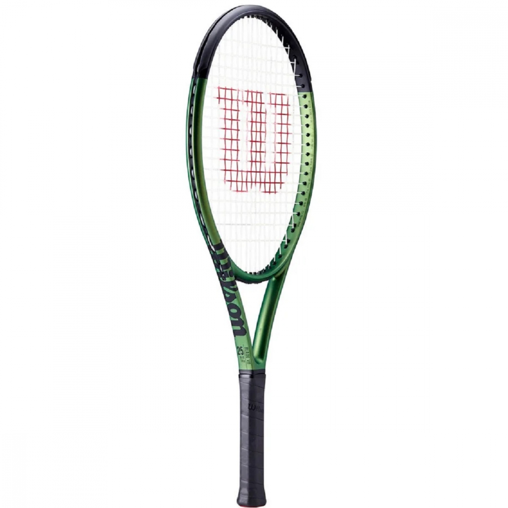 The Wilson Blade v8 Junior 26 Inch Tennis Racquet excites with head-turning looks and top-flight performance for junior players developing their game. Conducive for smooth, easy swings that allow players to be aggressive and dictate play, this racket can accelerate skill and confidence ahead of schedule. All-new design sports flashy green metallic finish for vibrant look, while top features include a Top Grip Taper on the handle for better feel on two-handed backhand and Parallel Drilling for a more forgiving string bed response. Racquet comes pre-strung with Wilson Sensation 17/1.25, an arm-friendly multifilament string built for enhanced comfort.