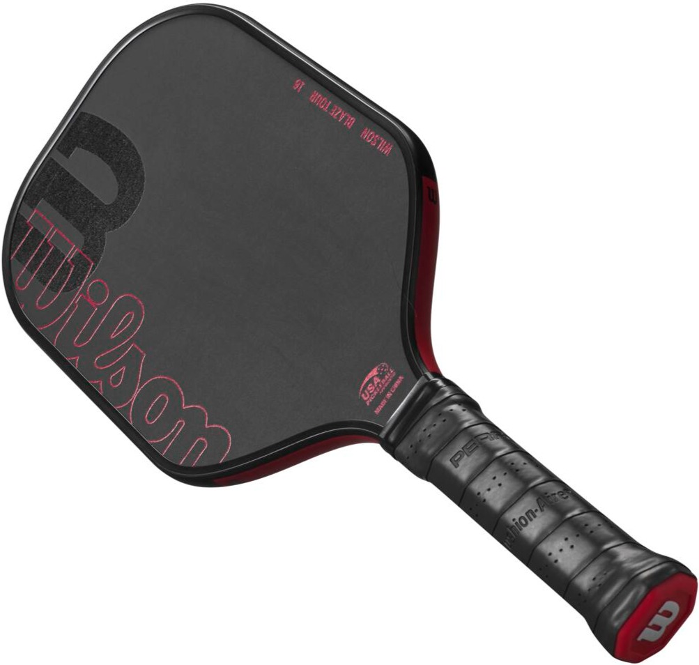 The Wilson Blaze Tour 16 Pickleball Paddle is a high-performance raw carbon fiber paddle with an elongated shape that's designed to maximize power, control and spin on each shot.