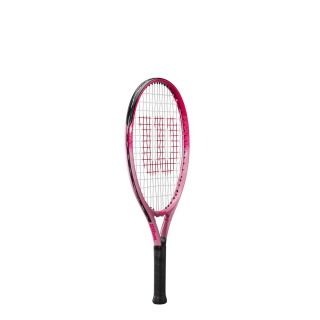 The Wilson Burn Pink 21 Inch Junior Tennis Racquet comes pre-strung and equipped with a bumper guard to help minimize damage when the racquet contacts the court surface.