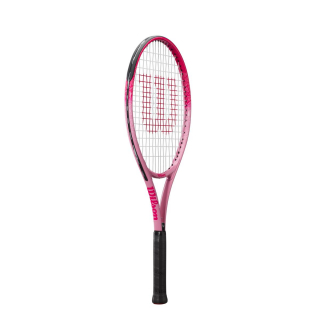 This junior kids’ tennis starter set includes (1) Wilson Burn Pink girls’ tennis racquet in your choice of frame lengths and (1) pink/white Advantage II tennis bag.
