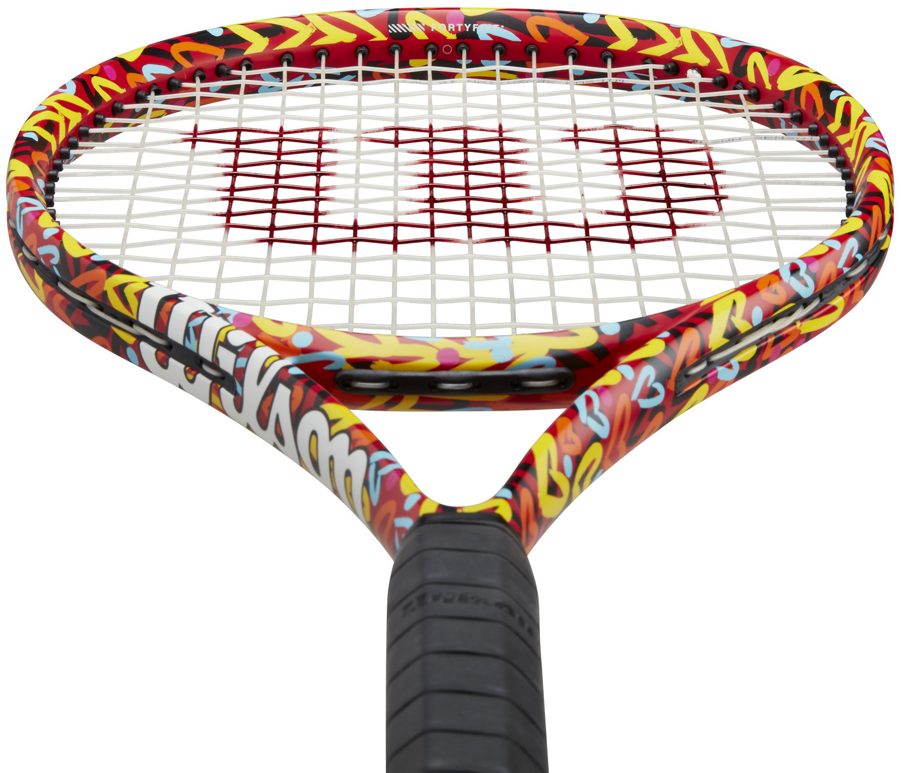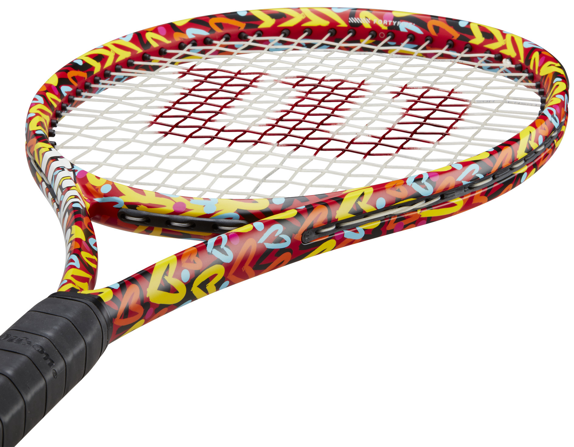 The Wilson Clash 100 v2 Britto Hearts Tennis Racquet unites the unique art of Romero Britto and the Clash 100 v2. This racquet blends flexibility and stability due to its patent-protected carbon FORTYFIVE° construction. The sweet spot is significantly larger, thanks to an updated construction at the tip of the hoop, increasing this racket's playability.