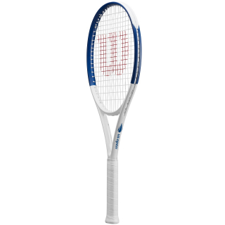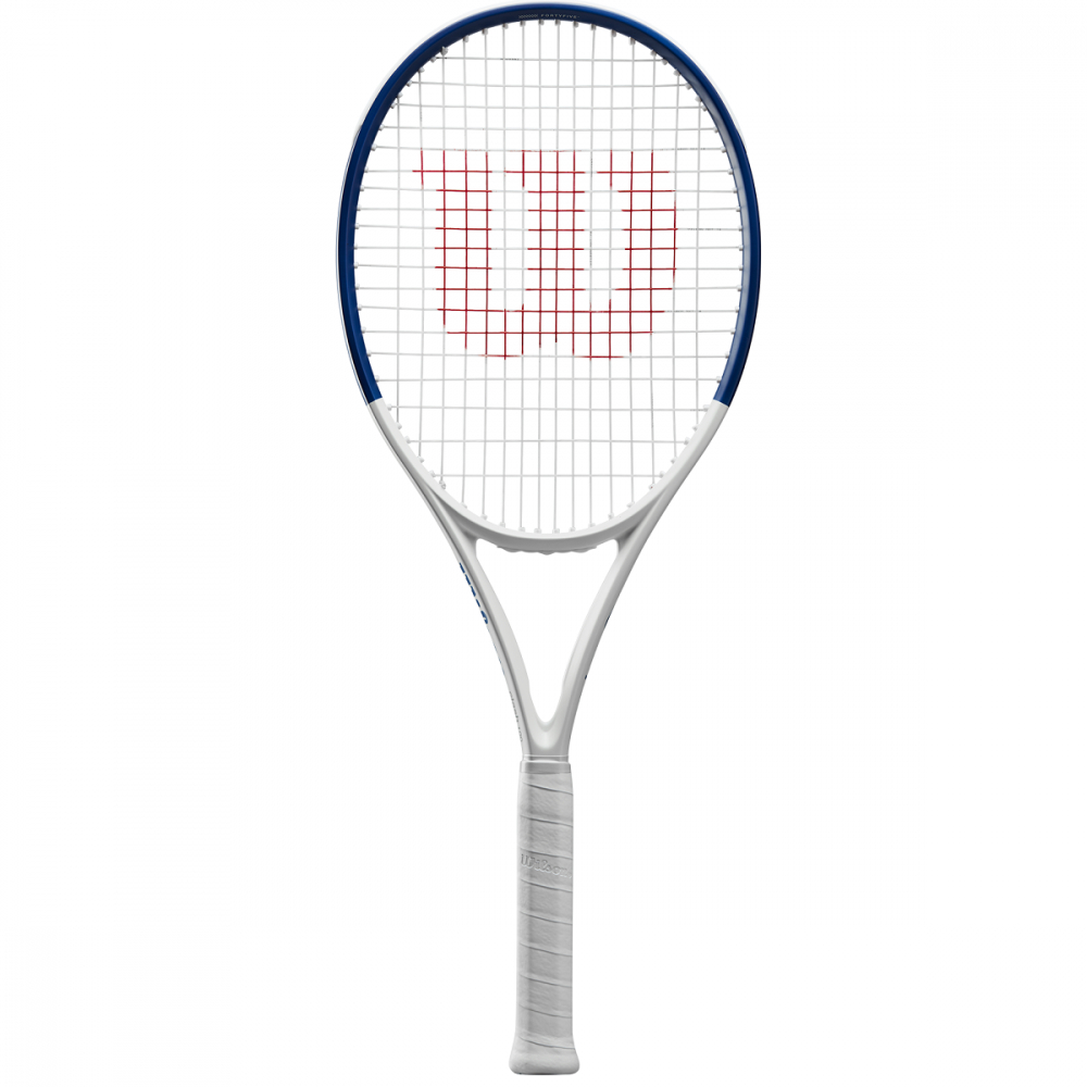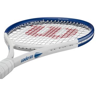 The Wilson Clash 100 v2 US Open Ltd Tennis Racquet is another version of the hero model of the groundbreaking and immensely popular Clash line. The Wilson Clash 100 v2 Tennis Racquet slightly revises the recipe for more consistency, more sustainability and a more killer design. An immediate appeal for its blend of flexibility and stability for a feeling unlike any other, this racket elevates playability thanks to a revised construction at the tip of the hoop that significantly enlarges the sweet spot. Agiplast plant-based bumper, grommets and end cap incorporate sustainable components for a reduced footprint on the environment. An embossed Clash logo on the throat completes a racket that pairs dynamic looks with even more dynamic performance. The shaft of the racquet is all white with the US Open logo on the frame and the head is dark blue.