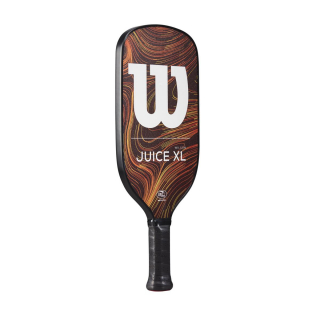 Sporting its signature elongated shape, the Wilson Juice XL Energy Pickleball Paddle 2 serves up a specialized paddle option for avid singles players. Its polymer honeycomb core helps dampen vibrations for excellent feel, while its fiberglass composite construction dials up the liveliness and responsiveness of the paddle surface at a lighter weight. Optimized for extended reach and maximum court coverage at the expense of a smaller sweet spot, this paddle makes it difficult for any opponent looking for clean winners. Paddle is assembled in the USA and approved by USA Pickleball for competition.