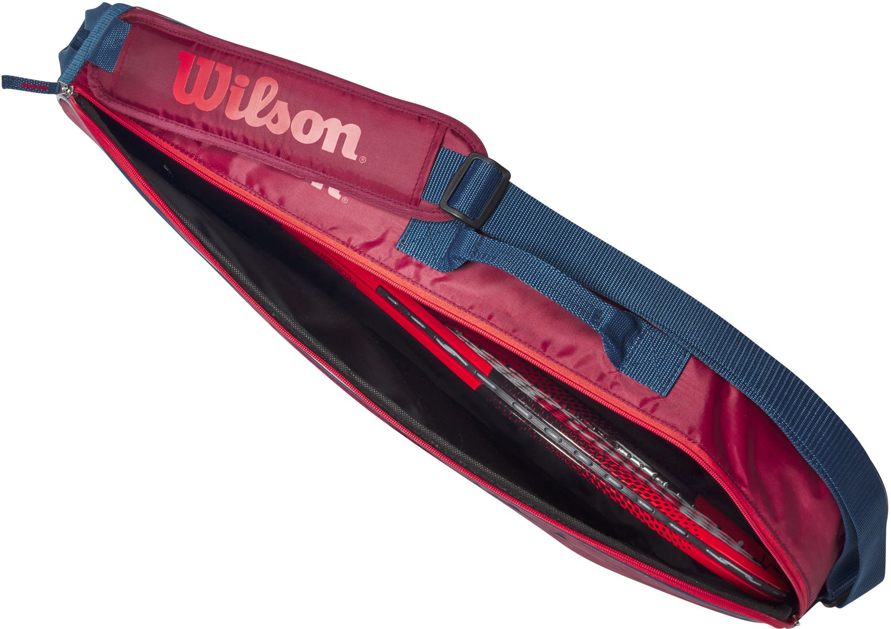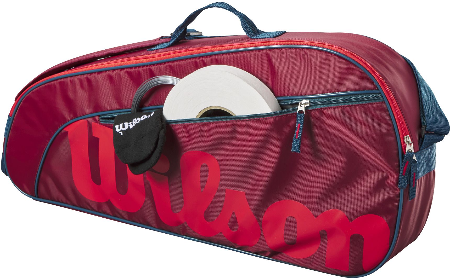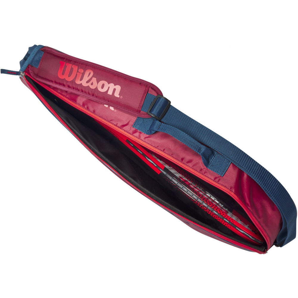 Wilson Junior 3 Pack Tennis Bag is the ideal bag for junior players heading to the court with all the essentials. The main compartment can hold up to three junior racquets, and an accessory pocked can store additional personal belongings. Padded shoulder strap makes it easy and comfortable to carry.