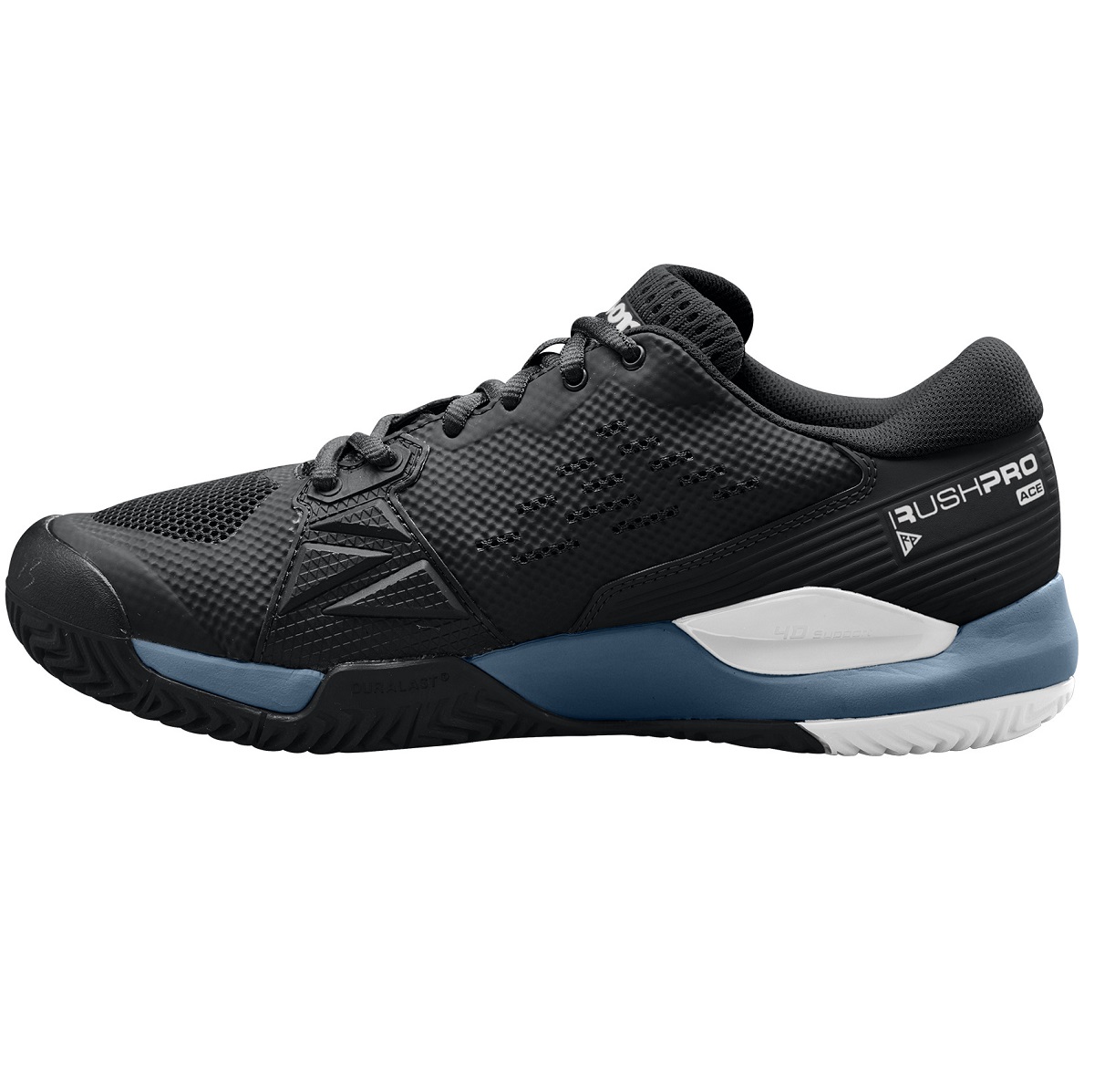 The Wilson Men’s Rush Pro ACE Tennis Shoes (Black/China Blue/White) has a wide fit (2E) construction that accommodates wider foot for more comfortable fit.