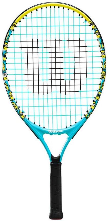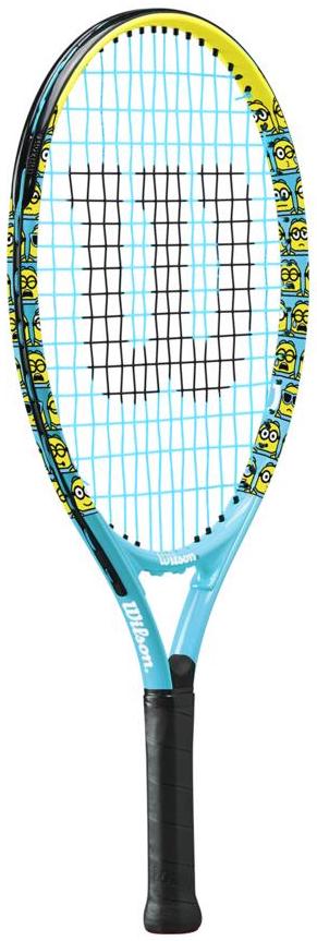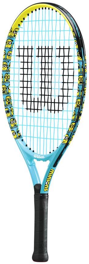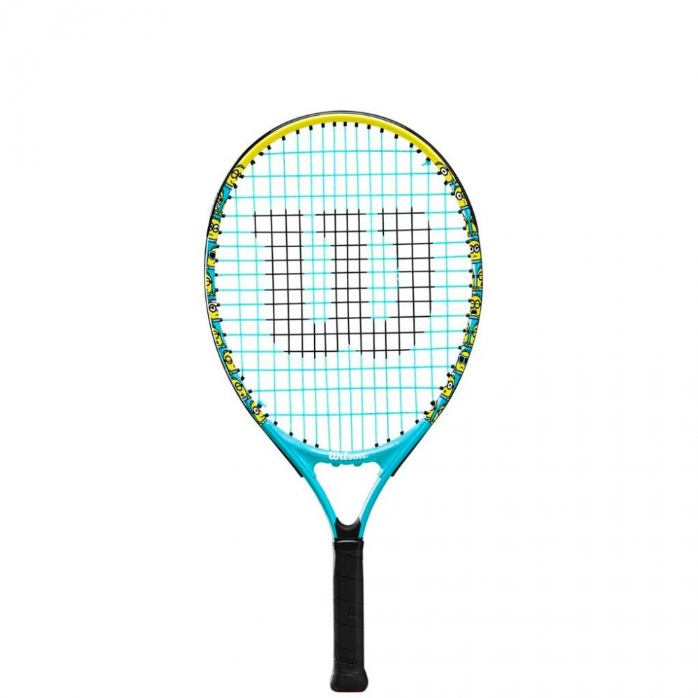 The Wilson Minions 2.0 Junior 21 tennis racquet maximizes the fun factor for young players learning how to play tennis. This racket’s entertaining design features the adventurous yellow henchmen lined along the 3 & 9 of the hoop, while its lightweight composition is perfect for arm-friendly swings and playability. Racket includes bumper guard along the top of the frame to help prevent damage to the surface edge.