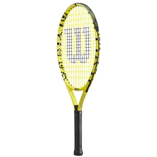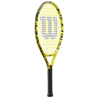 Created with minions-inspired DNA to commemorate the wildly popular global phenomenon, the Wilson Minions 23 Junior Tennis Racquet matches fun design with excellent performance. A-frame that offers plenty of lightweight power and stability for young junior players, this pre-strung racket includes a bumper guard along the top of the frame to help prevent damage to the surface edge. Perfect for young kids who love the adventures of the entertaining henchmen.
