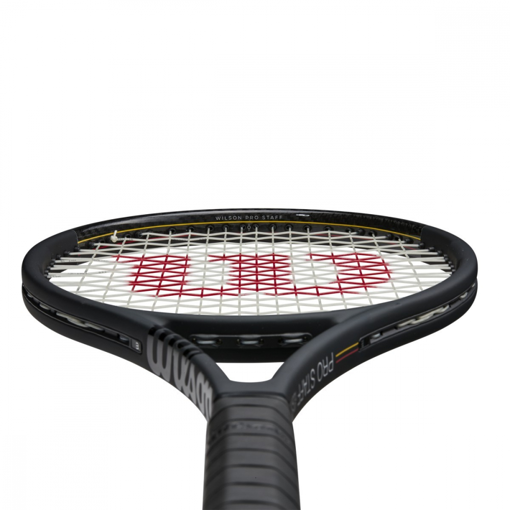 - Modern design gives nod to classic Pro Staff heritage with black elastic base, exposed carbon fiber weave with gloss finish at the tip and red/yellow pinstripes along the throat.