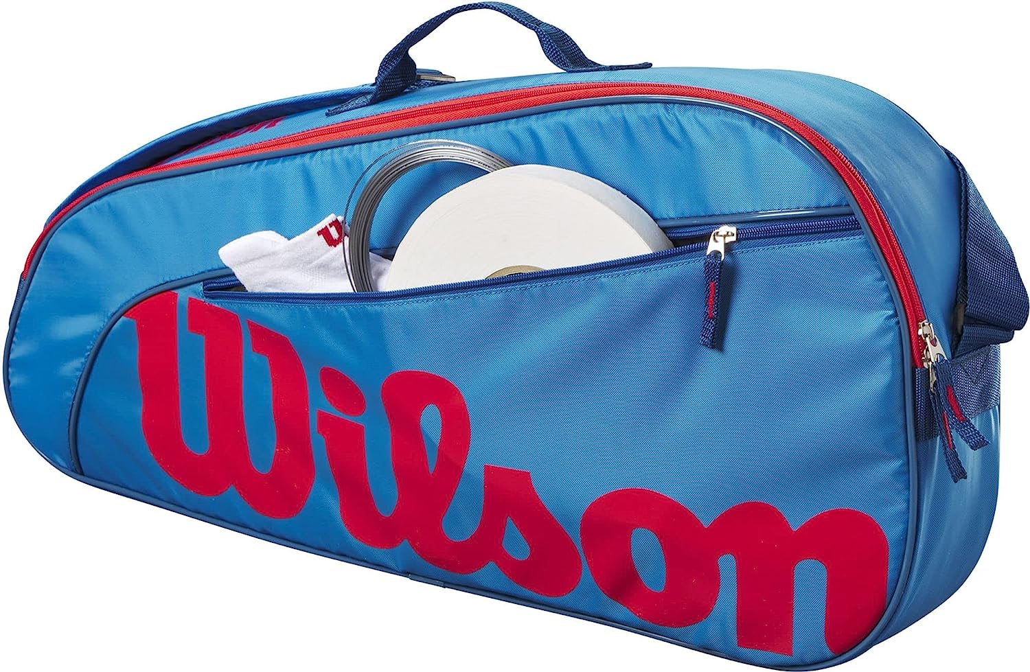 The Wilson Junior 3 Pack Tennis Bag is the ideal bag for junior players heading to the court with all the essentials. The main compartment can hold up to three junior racquets and an accessory pocket can store additional personal belongings. Padded shoulder strap makes it easy and comfortable to carry.