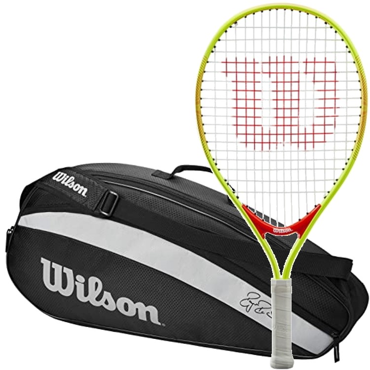 This tennis starter set includes (1) Wilson Roger Federer Junior Tennis Racquet and (1) Wilson Federer Team 3 Racquet Tennis Bag (Black).