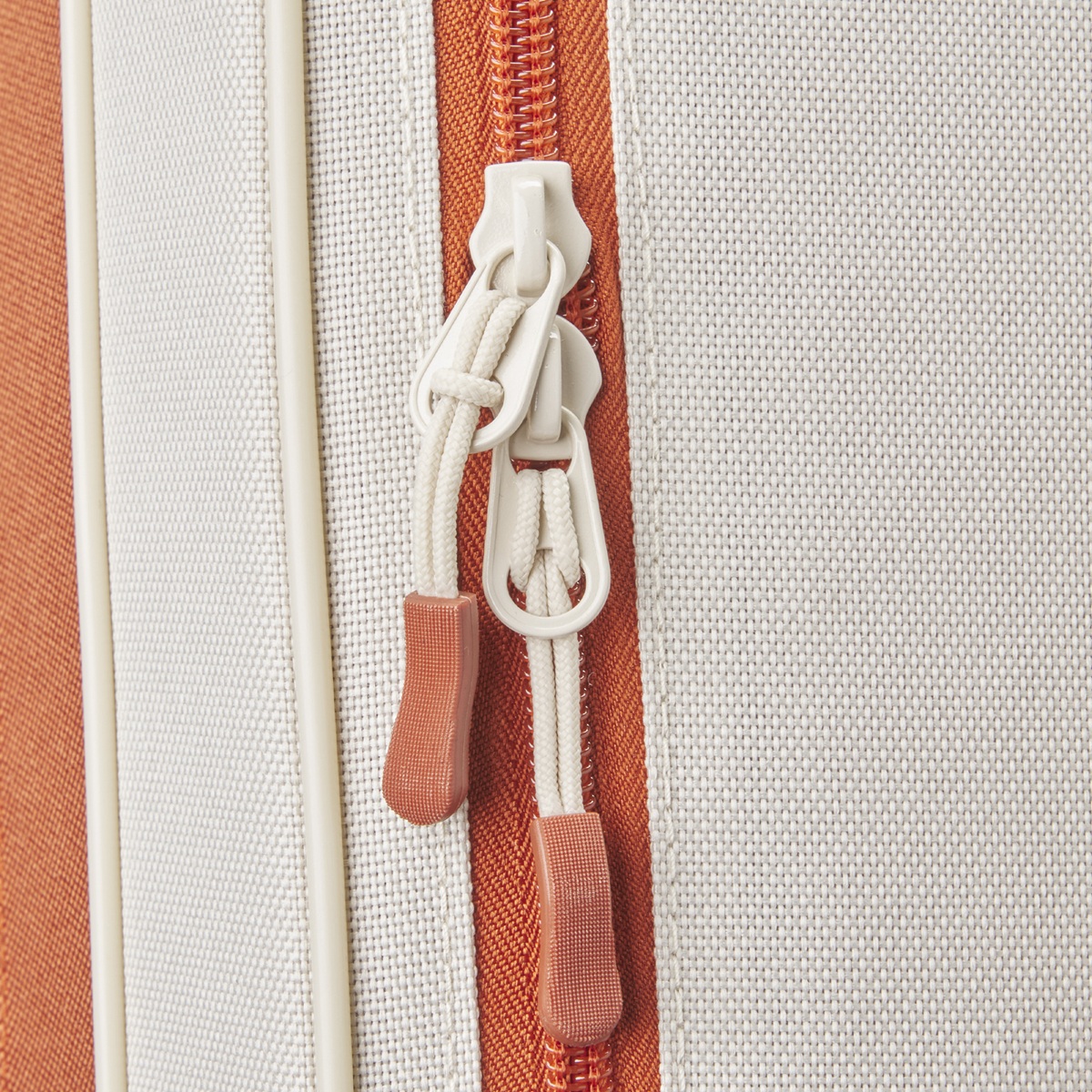 The Wilson Roland-Garros Team 6 Pack Tennis Bag (Cream/Clay) is inspired by the colors and design details of Roland-Garros 2025, the world's biggest clay court tennis tournament. This tennis bag fully and safely encloses up to six racquets. The bag is ideal when traveling for matches. The large accessory pocket stashes clothes, balls and other equipment, while the smaller external pocket holds small personal items. This bag features an adjustable over-the-shoulder strap, a top handle, and a webbing loop for hanging.