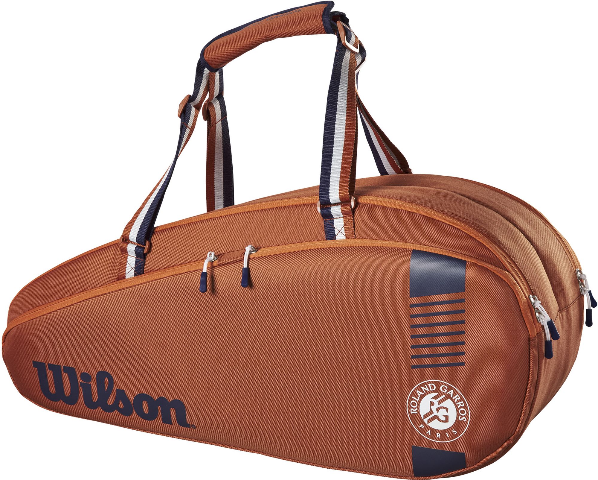 The Wilson Roland Garros Team 6 Pack Tennis Bag design is inspired by the French Open, the biggest clay court tennis tournament in the world