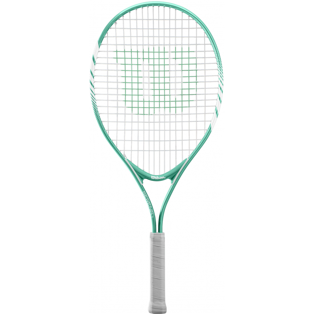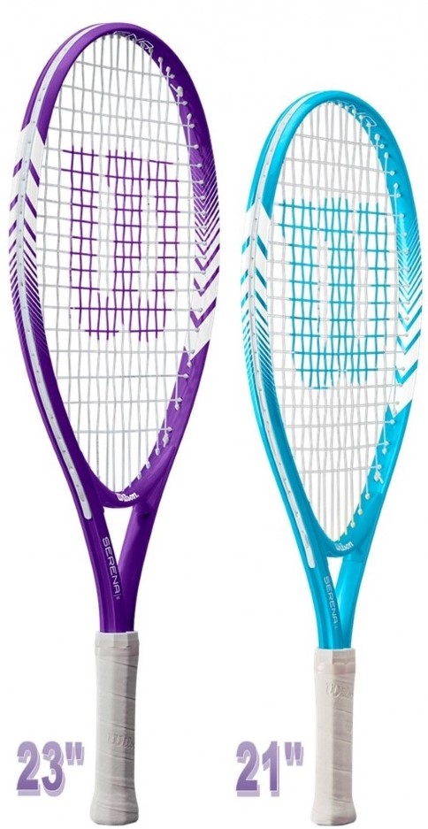 The Wilson Serena 25 Junior Tennis Racquet (Aqua) is the perfect starter racquet for beginner girls ages 9 to 10 who are learning to play tennis. Crafted with lightweight AirLite Alloy construction, it offers a combination of power, maneuverability, and durability ideal for young players. The 25-inch length and forgiving oval head help juniors make clean contact with the ball, while the sporty aqua design and arrow graphics add a fun, confident look to their game.
