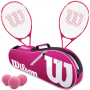 This tennis doubles starter set includes (2) Wilson Tempest ProLite tennis racquets, (1) Advantage 2.5 tennis bag in your choice of color and (3) pink tennis balls.