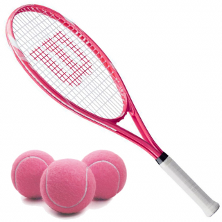 This tennis starter set includes (1) Wilson Tempest Pro Lite 27.5 inch tennis racquet and (3) pink tennis balls.