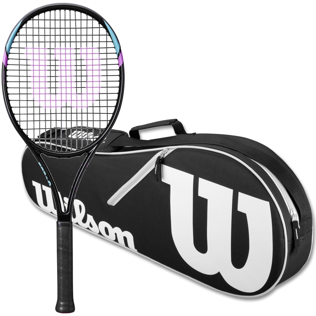 This tennis starter set includes (1) Wilson Six LV Tennis Racquet in your choice of grip size, and (1) Advantage II Tennis Bag (Black).