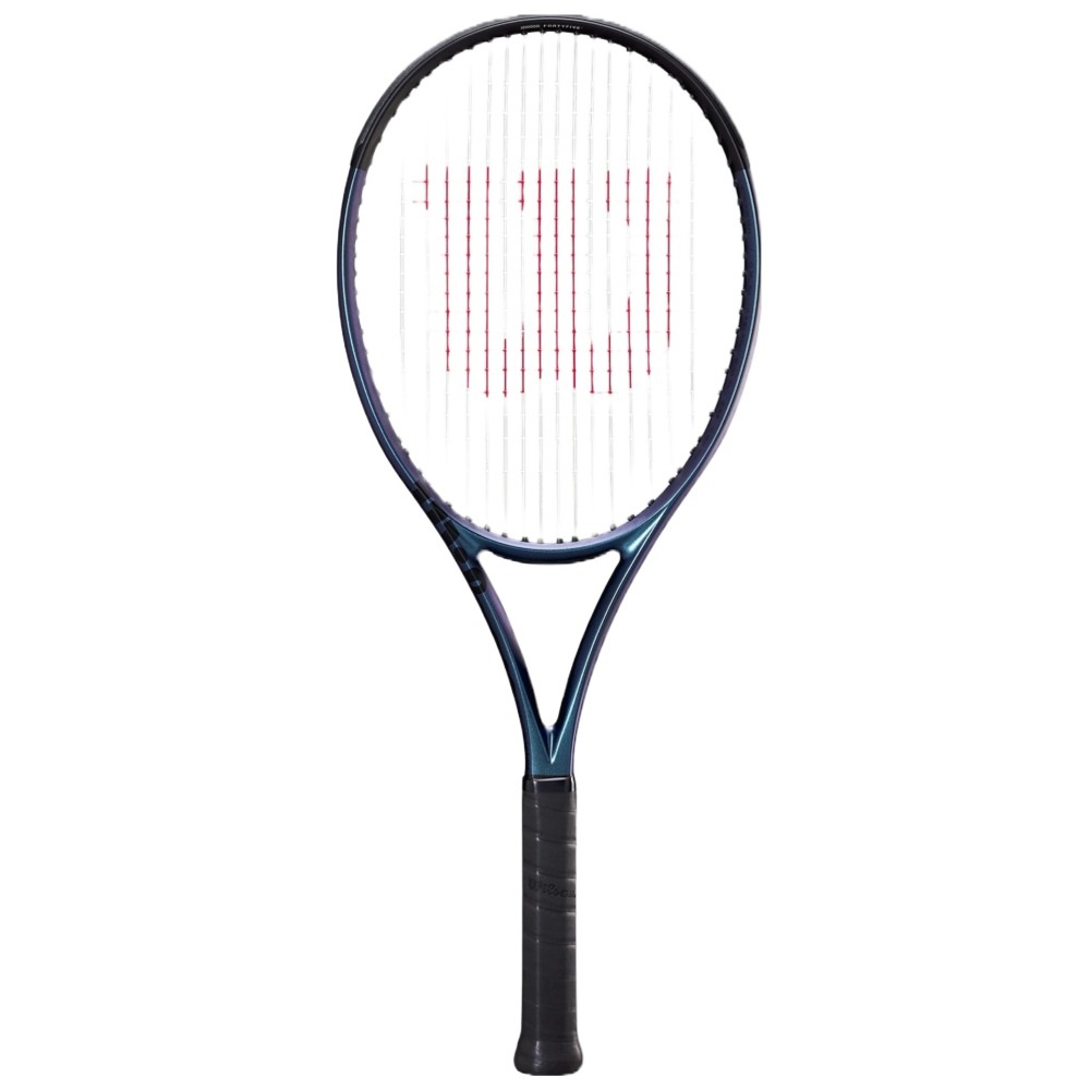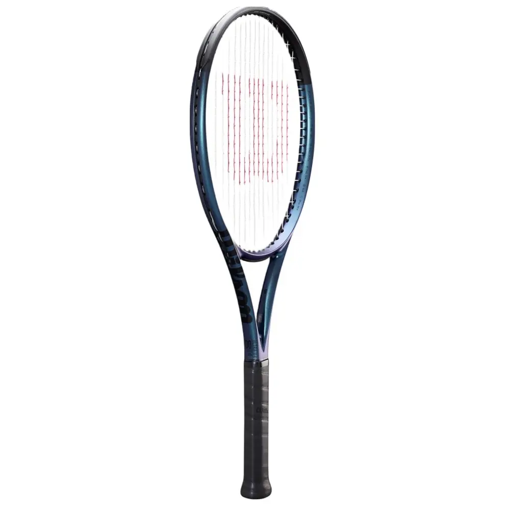 The Wilson Ultra 100 V4 Tennis Racquet ushers in a new generation of Ultra with supreme style and invigorating performance. Thanks to a new construction and a new geometry, this racket plays unlike any Ultra before it. Highlighted by the integration of FORTYFIVE° into the lay-up for a softer, more comfortable feel along with enhanced stability, this frame upgrades the delivery of easy power for its users. Key geometrical updates include an expanded Sweet Spot Channel at the tip of the hoop for extra power and reduced bulk in the beams for a sleeker, more aerodynamic look. On the subject of looks, this racket has no rival: color-shifting blues dance to the different angles of sun rays deflecting off the racket surface for a dazzling display.